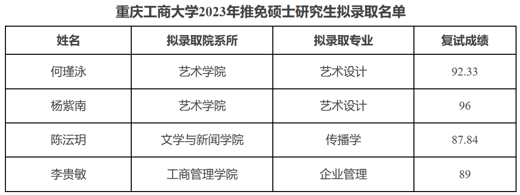 原文標(biāo)題:重慶工商大學(xué)2023年推免碩士研究生擬錄取名單公示