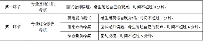 專業綜合素質考核主要考察學生的外語交流能力、專業素質及能力、思想品德、綜合素質和能力。專業綜合素質考核滿分100分。