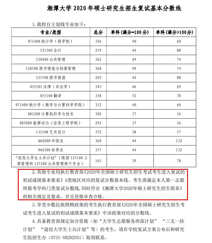 原文標題:湘潭大學 2020 年碩士研究生招生復試基本分數線