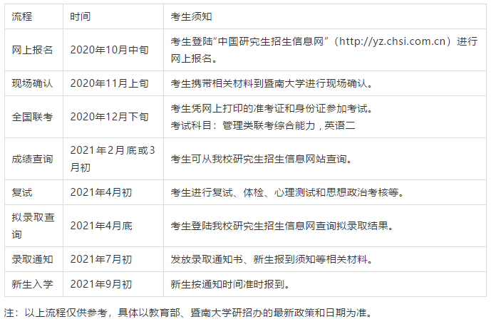以上就是“2021MBA招生簡章:暨南大學2021年工商管理碩士(MBA)招生簡章”的內容了,更多考研信息,請持續關注研線網。