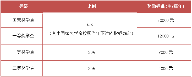 表二:全日制碩士研究生獎學金獎勵標準(定向除外)