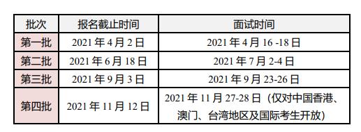 資料齊全且通過審核后,學(xué)院將以電子郵件的方式給予反饋,在各批次報名截止時間后按照相應(yīng)批次的面試時間統(tǒng)一安排面試。考生須攜帶考試通知上所要求的材料參加面試。面試時須攜帶所有資料原件進行資格審查。通過面試者將獲得條件錄取資格。