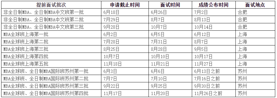 3.MBA項(xiàng)目提前面試批次:(學(xué)院保留根據(jù)申請(qǐng)及面試情況進(jìn)行調(diào)整的權(quán)力)