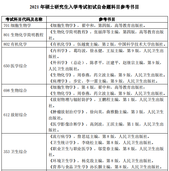 以上就是“2021考研參考書目:山東第一醫(yī)科大學2021年碩士研究生參考書目”的全部內容!更多2021考研院校參考書目等干貨,盡在研線網!