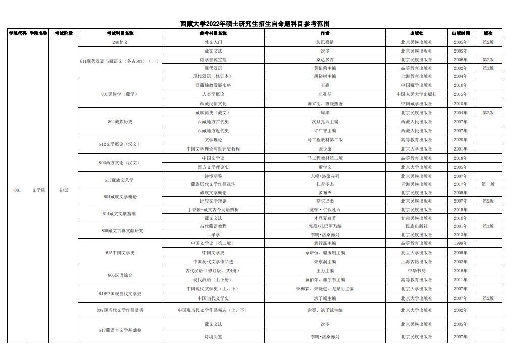“2022考研參考書目:西藏大學2022年碩士研究生招生自命題科目參考書”的內容,更多考研信息,請持續關注本網站。