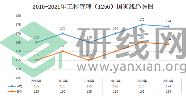 從近六年國家線走向我們可以看出,A區(qū)和B區(qū)工程管理分數(shù)線一直呈現(xiàn)上漲的趨勢,國家線最高分為在2020年的175分,單科達到88分,2021年的國家線也達到了174分,單科達到86分。國家線既是作為復(fù)試分數(shù)線參考,也是調(diào)劑分數(shù)線參考,同學(xué)們不要陷入通過國家線就能夠考上研究生的誤區(qū),最終看個人是否能進入復(fù)試,還是要看院校給出的分數(shù)線,也就是我們所說的“校線”、“院線”。總而言之,分數(shù)越高越好。