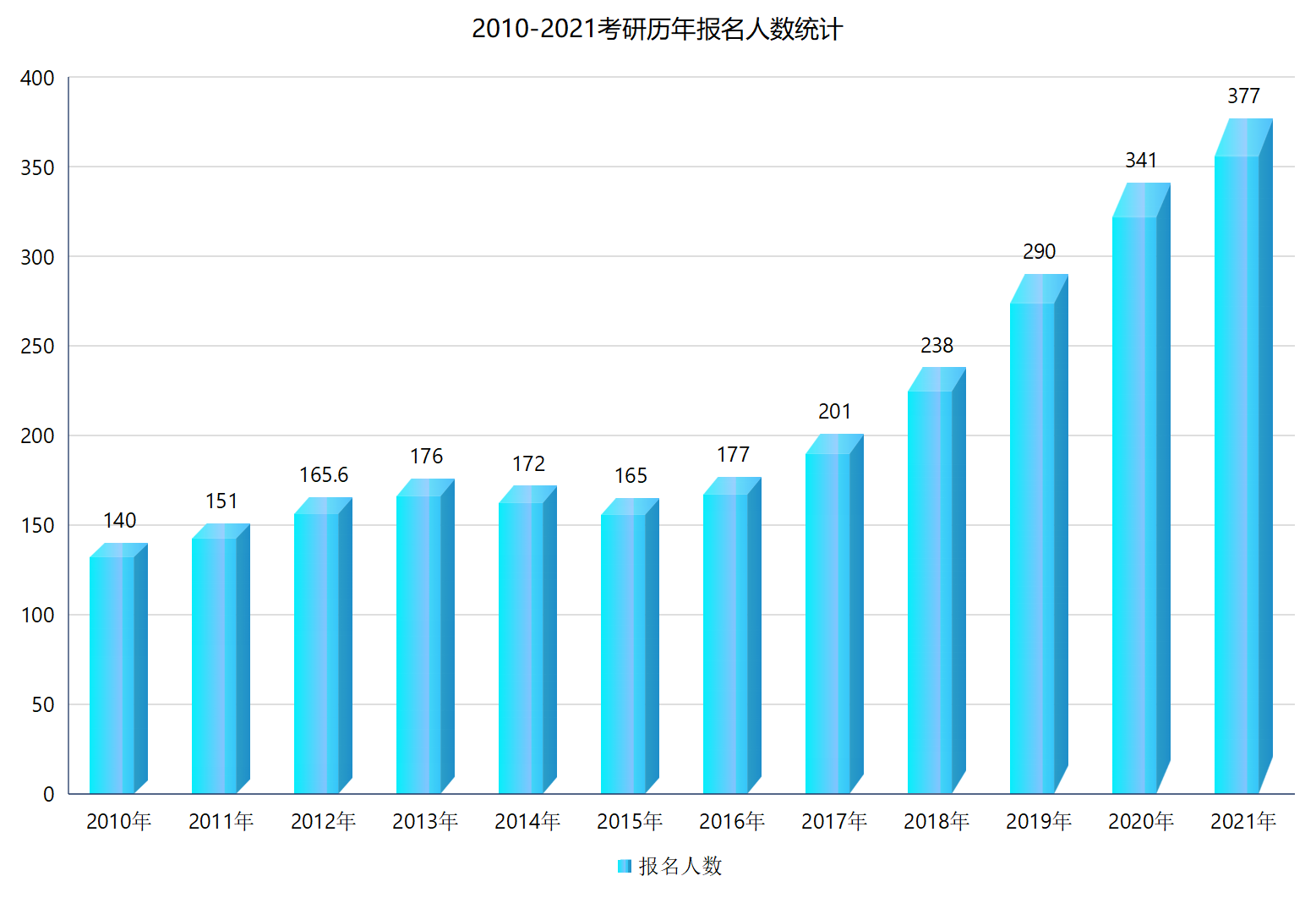 那么讓我們來看看2010-2021年考研報考人數的趨勢吧!