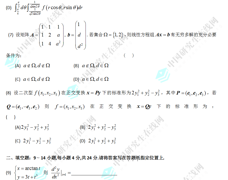 | 2009 | 數(shù)學(二) | 下載 |