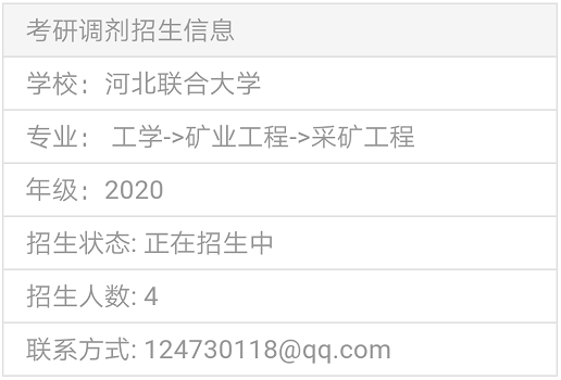以上就是“2020考研調劑信息:華北理工大學招收礦業工程相關專業碩士調劑生”,的全部內容,2020考研全國調劑綜合服務平臺正式上線!三大功能亮點,幫你輕松調劑!