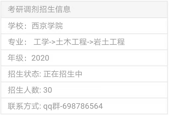以上就是“2020考研調劑信息:西京學院巖土工程專業招收碩士調劑生”,的全部內容,2020考研全國調劑綜合服務平臺正式上線!三大功能亮點,幫你輕松調劑!