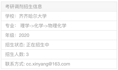 以上就是“2020考研調劑信息:齊齊哈爾大學物理化學專業接收碩士調劑生”,的全部內容,2020考研全國調劑綜合服務平臺正式上線!三大功能亮點,幫你輕松調劑!