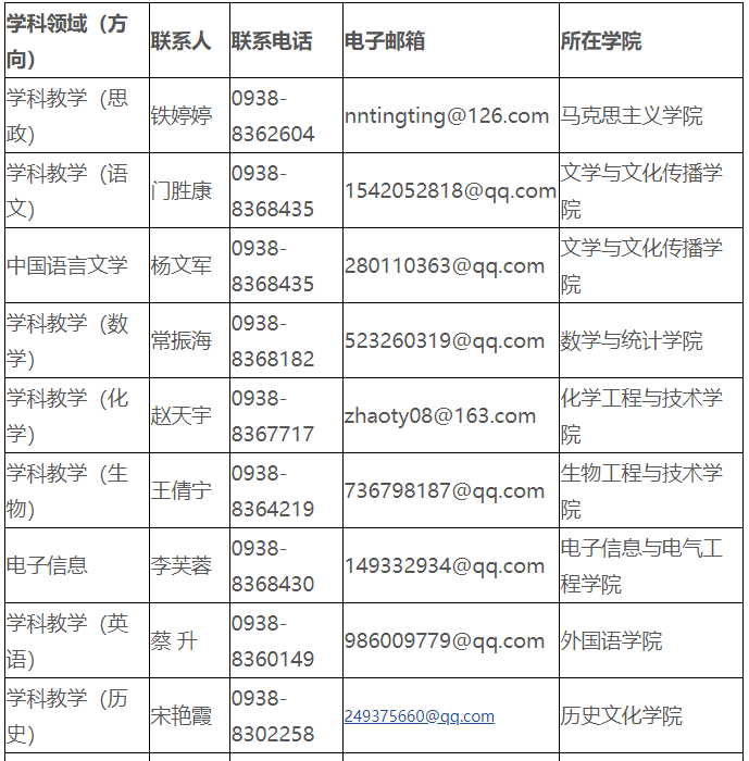各學(xué)科領(lǐng)域(方向)聯(lián)系人及聯(lián)系方式