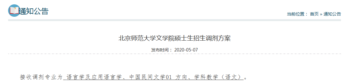原標(biāo)題:北京師范大學(xué)文學(xué)院碩士生招生調(diào)劑方案