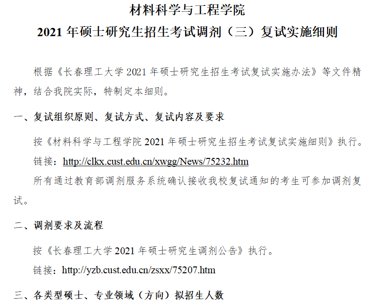 以上就是小編整理“2021考研調(diào)劑:長春理工大學(xué)材料科學(xué)與工程學(xué)院2021年碩士研究生招生考試調(diào)劑(三)”的全部內(nèi)容,想了解更多調(diào)劑信息,請持續(xù)關(guān)注本網(wǎng)站。