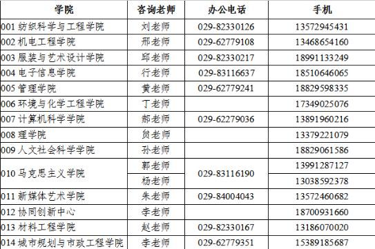 聯系部門:西安工程大學研究生招生辦公室(金花校區教學主樓1-1003室)
