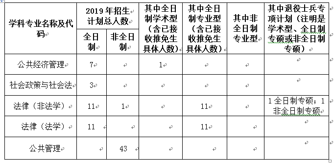 注:推免生計劃已于2018年10月完成,此次復試應在2019年總招生規模人數減去公共經濟管理學生1人。