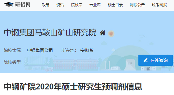 以上就是“2020考研調劑信息:中鋼集團馬鞍山礦山研究所2020年碩士研究生調劑信息”的全部內容,祝您考研成功!