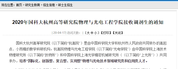 以上就是“2020考研調(diào)劑信息:國(guó)科大杭州高等研究院物理與光電工程學(xué)院2020年碩士研究生招生調(diào)劑信息”的全部?jī)?nèi)容!更多考研調(diào)劑內(nèi)容,請(qǐng)關(guān)注考研調(diào)劑信息欄目!
