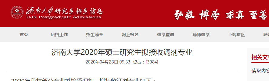以上就是“2020考研調(diào)劑信息:濟(jì)南大學(xué)2020年碩士研究生招生調(diào)劑信息”的全部內(nèi)容!更多考研調(diào)劑內(nèi)容,請關(guān)注考研調(diào)劑信息欄目