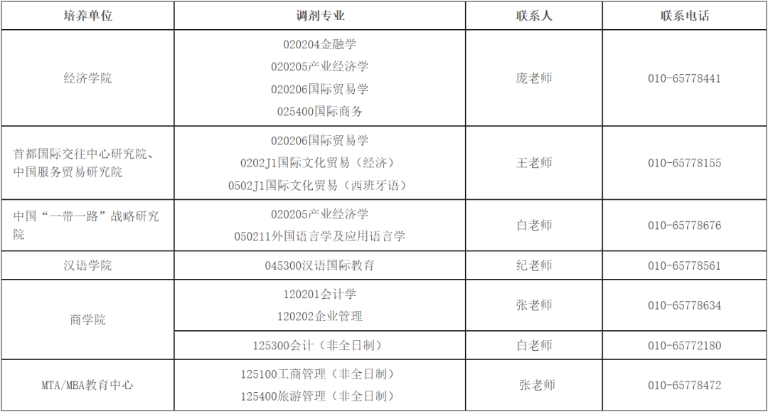 一、接受調(diào)劑專業(yè)及聯(lián)系方式