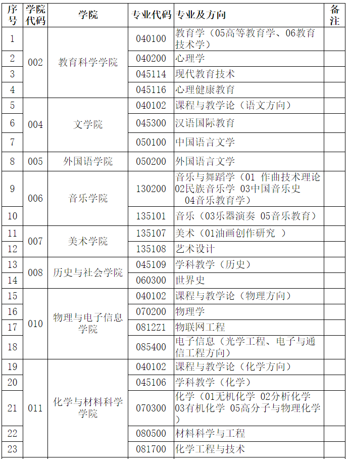 2021年全國碩士研究生招生考試國家線已發布,根據我校各專業第一志愿考生上線情況,結合《安徽師范大學2021年全國碩士研究生招生考試專業目錄》中公布的擬招生計劃,現將我校擬接受調劑專業公布如下:
