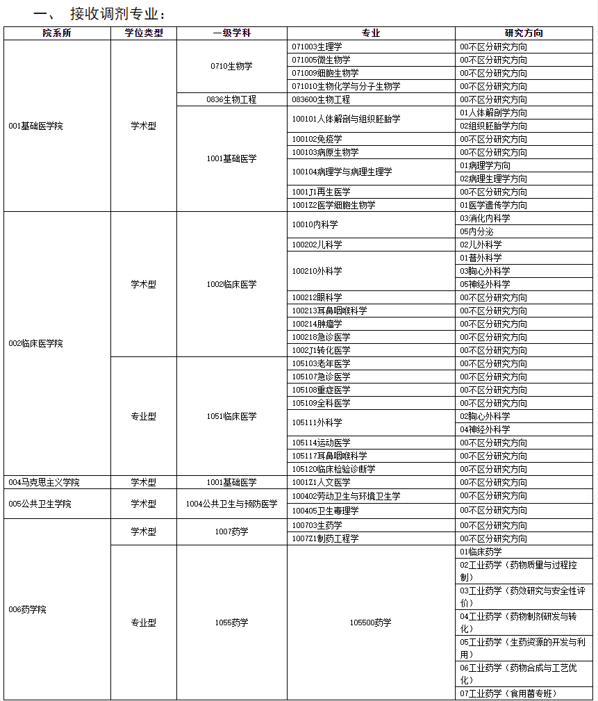 說明:本表所列調劑專業根據教育部公布2021年全國碩士研究生分數線及我校歷年招生錄取情況進行的分析結果,最終調劑專業以正式調劑通知為準。