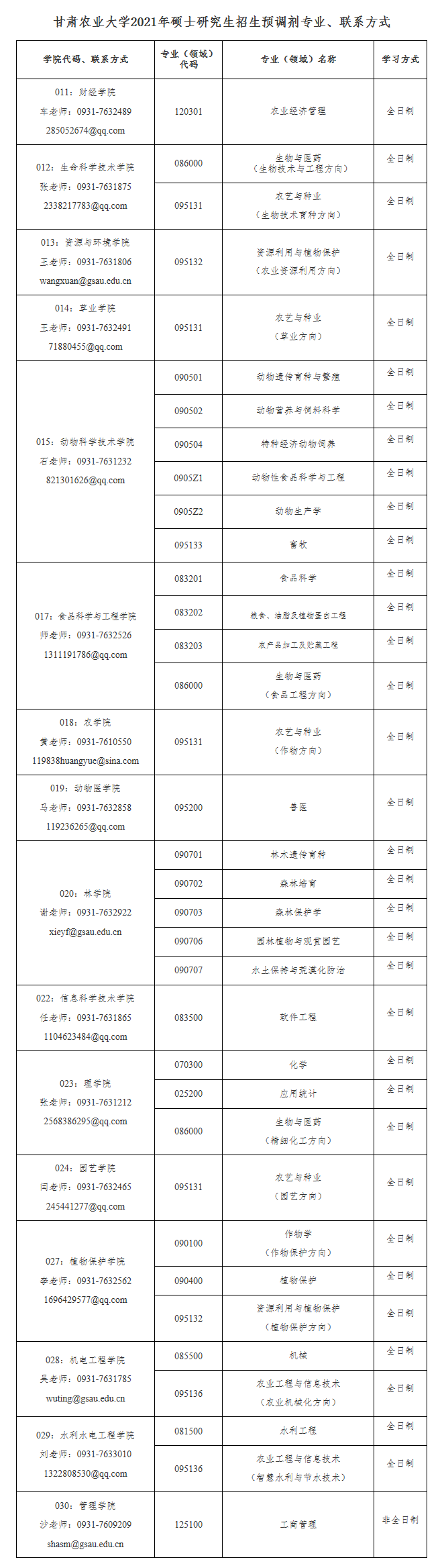 以上就是小編整理“2021考研調劑:甘肅農業大學2021年2021年碩士研究生調劑公告”的全部內容,想了解更多調劑信息,請持續關注本網站。