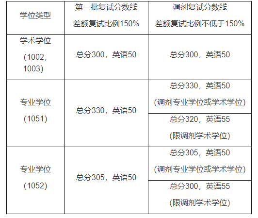 2.除臨床醫(yī)學(xué)和口腔醫(yī)學(xué)以外其他各專(zhuān)業(yè):執(zhí)行A類(lèi)考生國(guó)家分?jǐn)?shù)線復(fù)試和調(diào)劑。