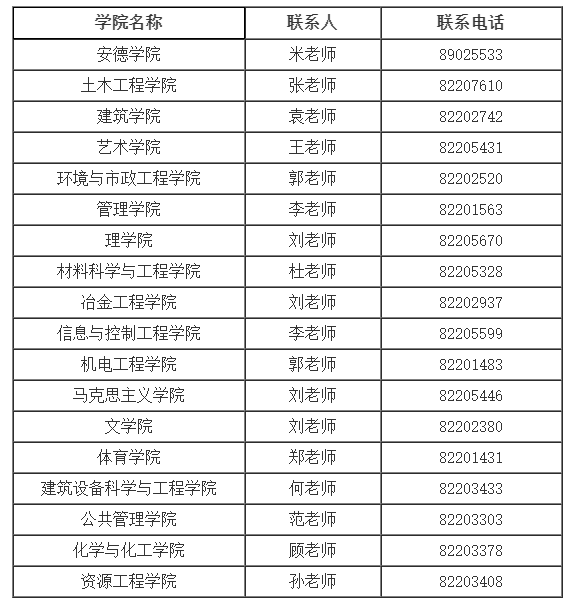 各招生學院聯系方式: