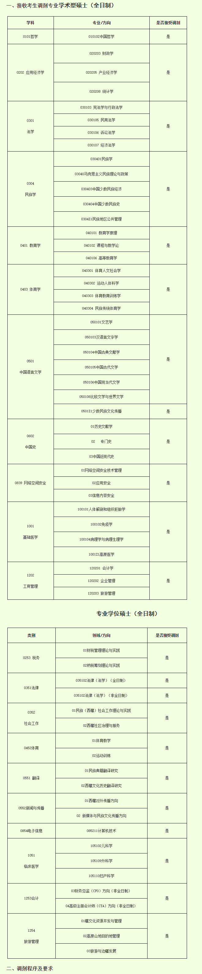 (4)民族學(0304)為交叉學科,(注:民族學專業下設的各研究方向均授法學碩士學位):接收報考法學類(03)的考生調劑;