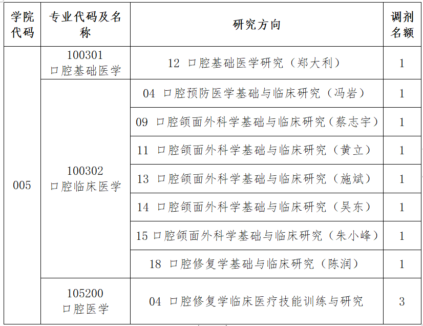 3.第一志愿報考我校口腔醫學(專業代碼105200)的考生,本輪調劑,可報考口腔醫學(專業代碼105200),不可報考口腔基礎醫學(專業代碼100301)或口腔臨床醫學(專業代碼100302)。