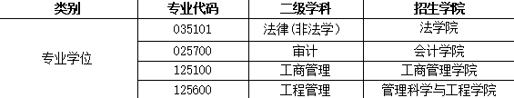 (5)第一志愿報考工商管理、公共管理、旅游管理、工程管理、會計、圖書情報、審計專業學位碩士的考生,在滿足調入專業報考條件、且初試成績同時符合調出專業和調入專業在調入地區的全國初試成績基本要求的基礎上,可申請相互調劑,但不得調入其他專業;其他專業考生也不得調入以上專業。