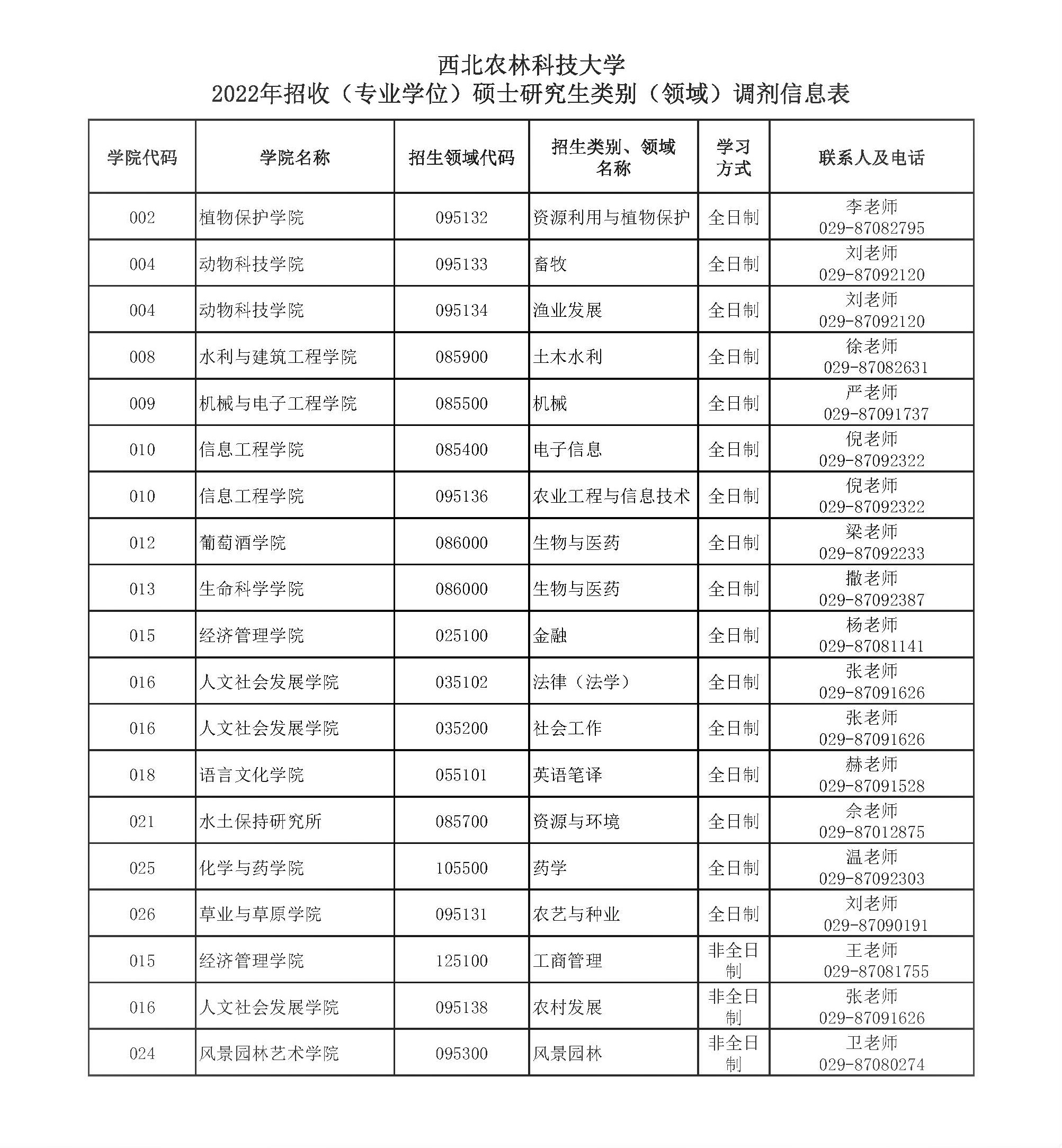 以上就是小編整理“2022考研調劑:西北農林科技大學2022年碩士研究生調劑信息(網上調劑)”的全部內容,想了解更多調劑信息,請持續關注本網站。