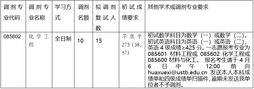 以上就是小編整理“2022考研調(diào)劑:北京科技大學(xué)化學(xué)與生物工程學(xué)院2022年碩士研究生調(diào)劑工作方案”的全部內(nèi)容,想了解更多調(diào)劑信息,請持續(xù)關(guān)注本網(wǎng)站。
