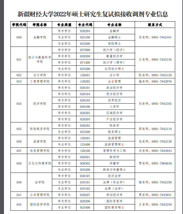 以上就是小編整理“2022考研調(diào)劑:新疆財(cái)經(jīng)大學(xué)2022年碩士研究生復(fù)試擬接收調(diào)劑專業(yè)信息”的全部內(nèi)容,想了解更多調(diào)劑信息,請(qǐng)持續(xù)關(guān)注本網(wǎng)站。