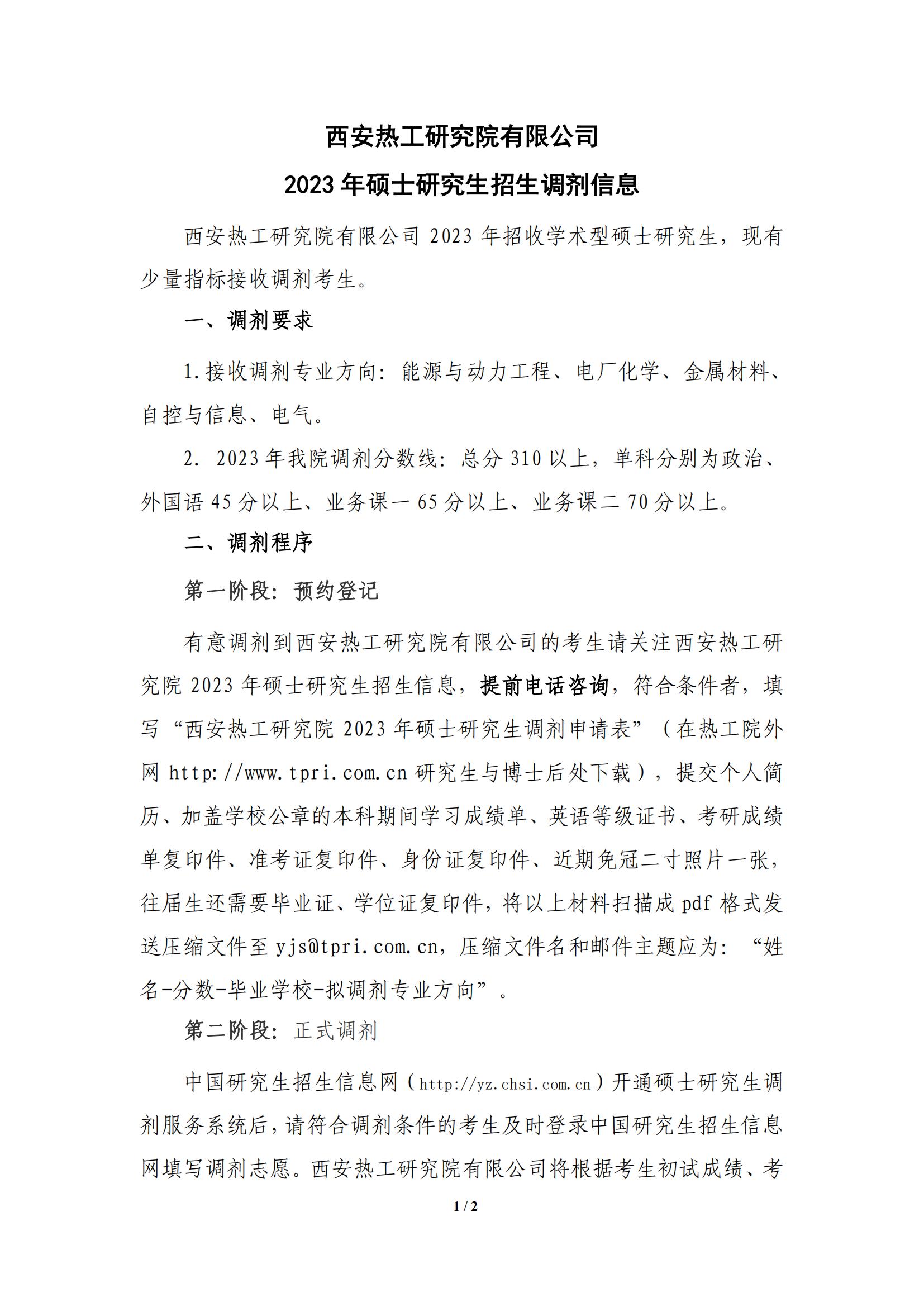 以上就是小編整理“2023考研調劑:西安熱工研究院有限公司2023年碩士研究生招生調劑信息”的全部內容,想了解更多調劑信息,請持續關注本網站。