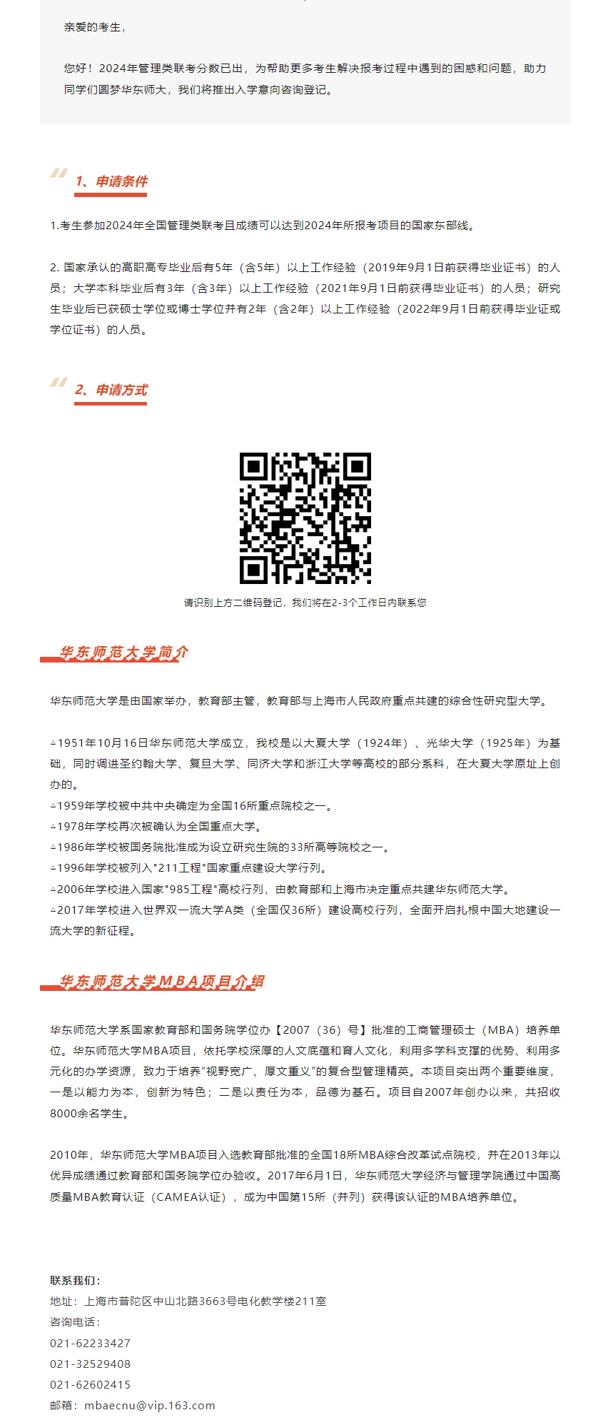 2024考研調劑:2024年華東師范大學MBA入學意向登記