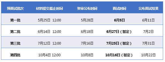 3.申請時間:請報名第一批次預面試的考生于5月25日12:00前提交資審材料,報名其余批次考生請等待后續通知。