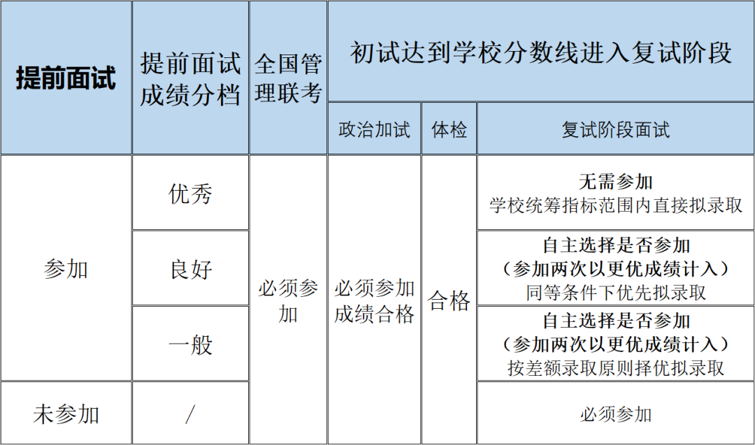 提前面試成績設“優秀”“良好”“一般”三檔,可替代復試階段面試成績