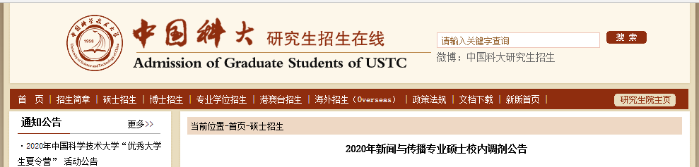 科技傳播與科技政策系新聞與傳播專業碩士(專業代碼055200)現有少量招生名額,根據《中國科學技術大學碩士研究生招生調劑工作管理規定》,特制定本調劑公告。