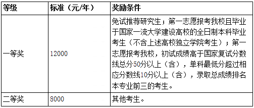 主要用于獎勵學業成績特別優秀、科學研究成果顯著、社會公益活動表現突出、綜合素質優異的全脫產學習全日制研究生。獎勵標準為碩士研究生20000元/年。
