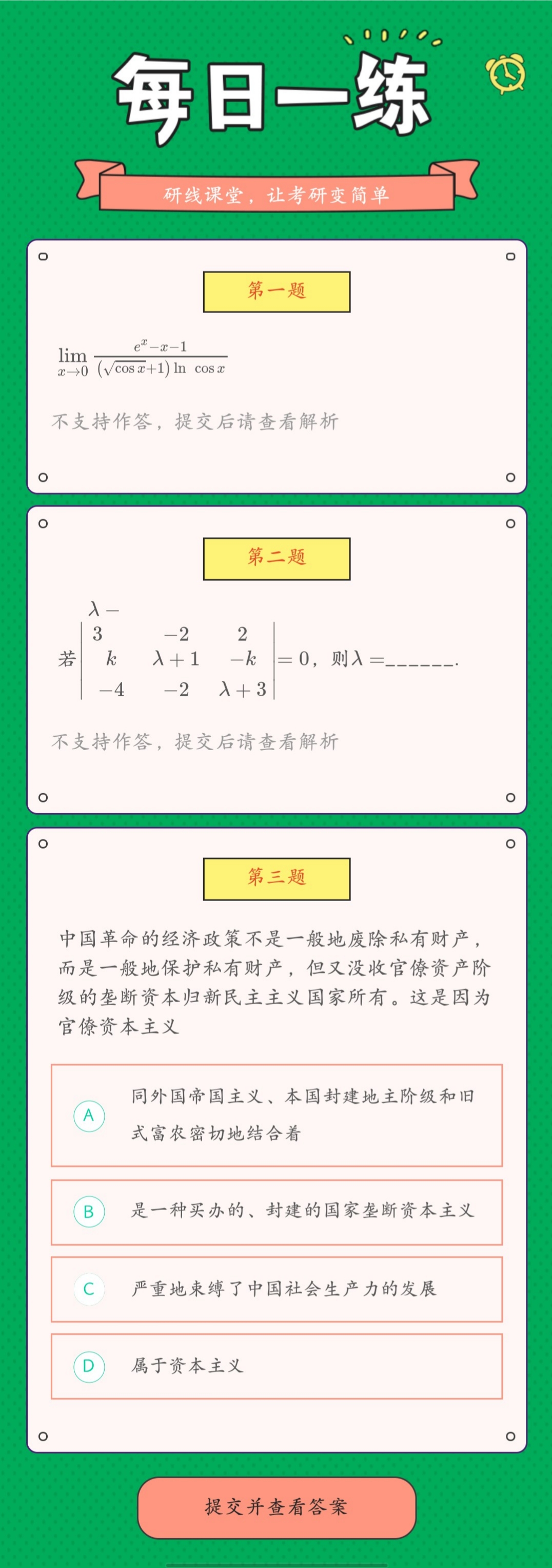 以上就是今日每日一練的全部內(nèi)容,跟著每日一練,考研輕松復習!更多考試練習,點擊考研每日一練!