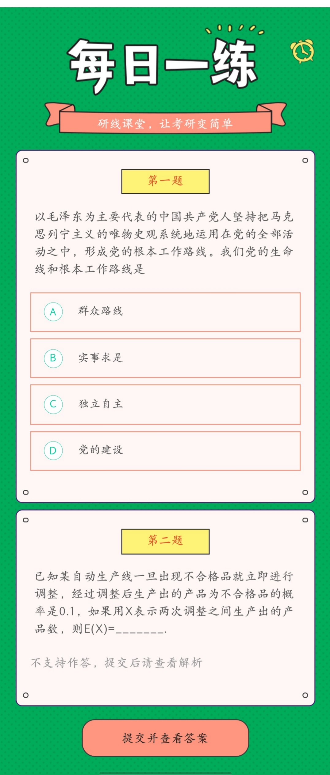 點擊進入:研線課堂萬題庫,每日習題不重復。全面題型任你刷,真題解析隨便看。