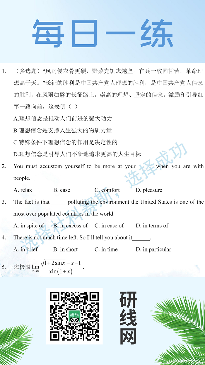 以上就是今日每日一練的全部內容,跟著每日一練,考研輕松復習!更多考試練習,點擊考研每日一練