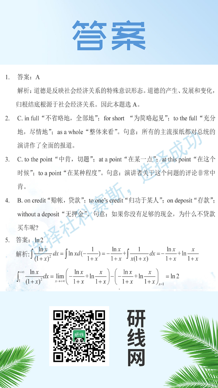 以上就是今日每日一練的全部內容,跟著每日一練,考研輕松復習!更多考試練習,點擊考研每日一練