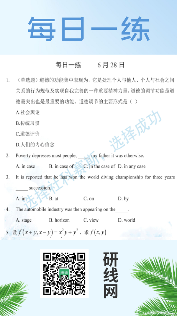 6月28日:2020考研學(xué)碩每日一練以及答案