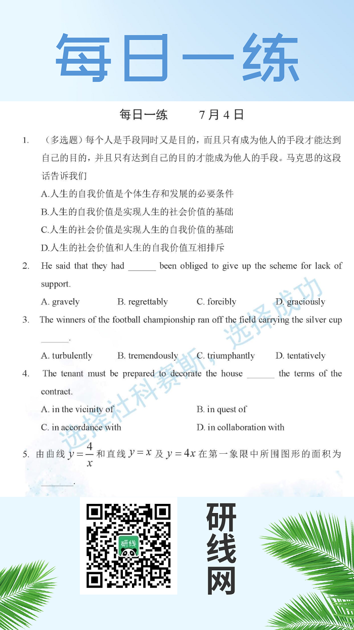 7月4日:2020考研學(xué)碩每日一練以及答案