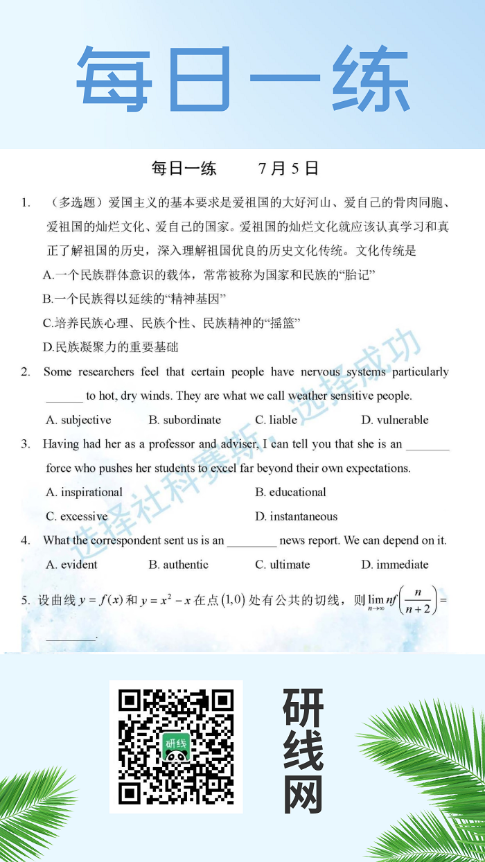 7月5日:2020考研學(xué)碩每日一練以及答案
