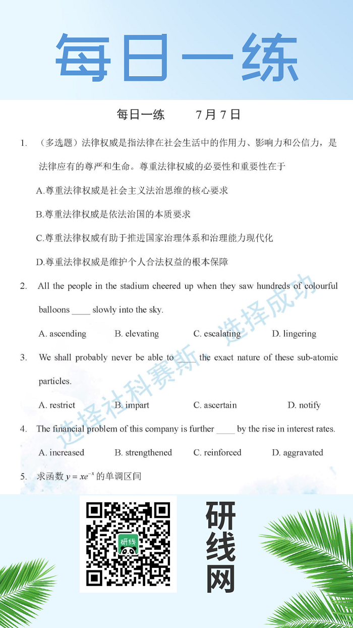 以上就是今日每日一練的全部內(nèi)容,跟著每日一練,考研輕松復習!更多考試練習,點擊考研每日一練!