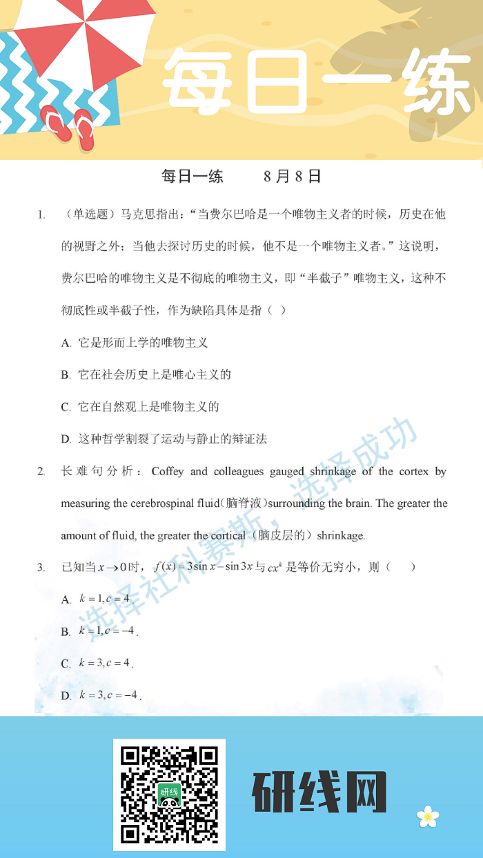 以上就是今日每日一練的全部內容,跟著每日一練,考研輕松復習!更多考試練習,點擊考研每日一練